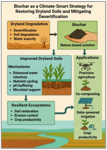 Биоуголь — материал из сельскохозяйственных отходов — может помочь обратить вспять деградацию земель, повысить производство продуктов питания и устойчивость к изменению климата в уязвимых регионах. Он улучшает здоровье почвы, влагоудержание и поддерживает сельское хозяйство в засушливых районах, где опустынивание, нехватка воды и снижение плодородия угрожают продовольственной безопасности.
